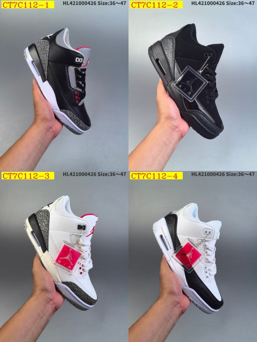 A I R - J OR D A N 3 - R E T R O Size 36-45 Calidad/Quality 5A Elige color por codigo en foto y tu talla (si es necesario) /Choose your color by code in the photo and your size (if required) Vendedor Linn - CT7C112 Si dudas entre dos tallas, siempre aconsejamos coger la mas grande - If you're between sizes, we always recommend choosing the larger one. No se hacen devoluciones por elegir mal la talla o color - We do not accept returns for incorrect size or color choices.